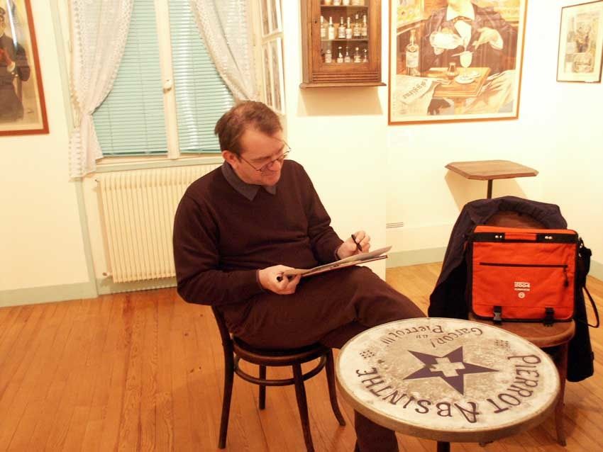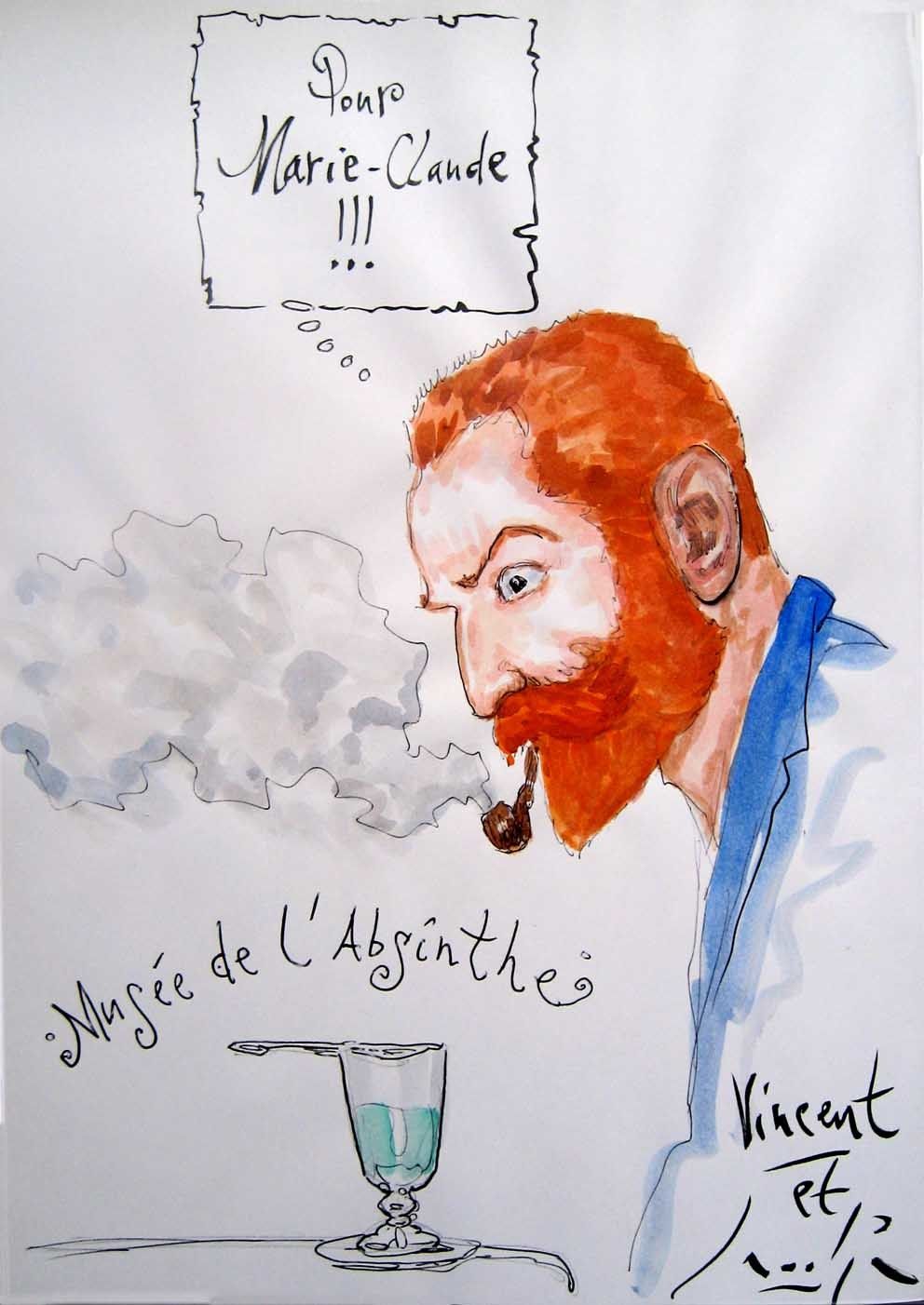 Le Salon de la BD à Auvers-sur-Oise a fêté cette année ses 10 ans d’existence. Gradimir Smudja, invité d’honneur en 2005, est venu au Musée de l’Absinthe découvrir plus précisément un certain aspect de l’environnement de Vincent van Gogh. Depuis, il revient chaque année à Auvers dans le cadre du Salon et ne manque pas de venir au musée déguster une verte.