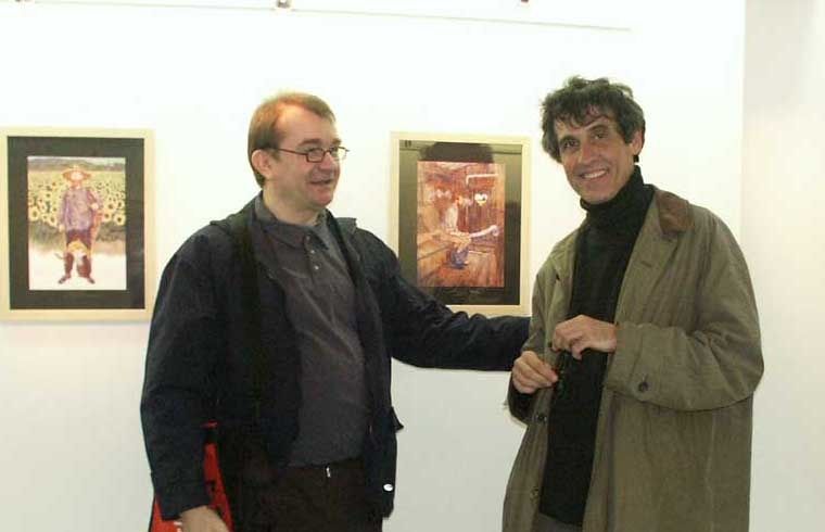 Gradimir Smudja et Frédéric Lions, bibliothécaire à la Bibliothèque Historique de la Ville de Paris, le soir du vernissage, 2005.