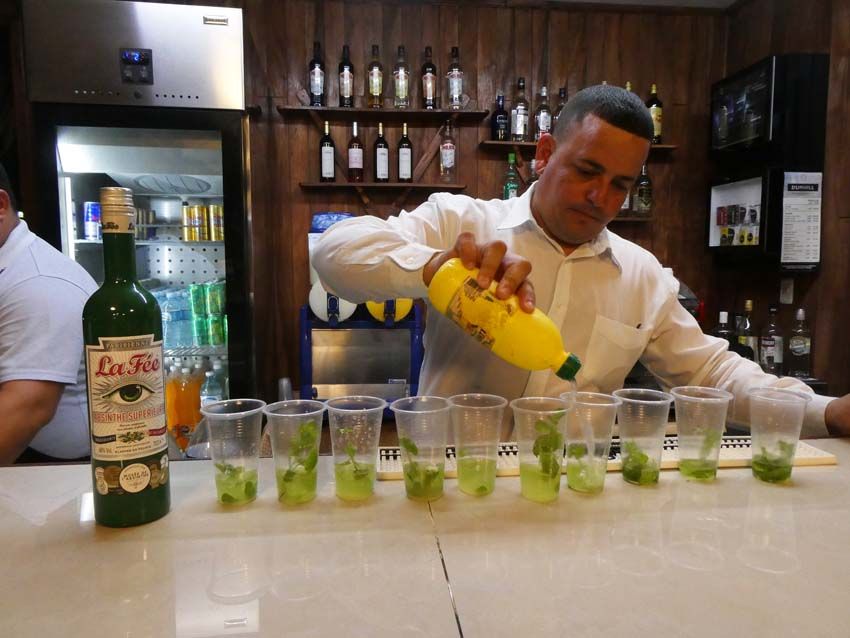 Dans le French Mojito, initié par George Rowley, le père de l'Absinthe La Fée parisienne, le rhum a été remplacé par l'absinthe. Le garçon qui n'avait jamais entendu parler d'absinthe- il n'y en a pas dans tout le pays- s'est exécuté avec bonne grâce après une certaine hésitation cependant.